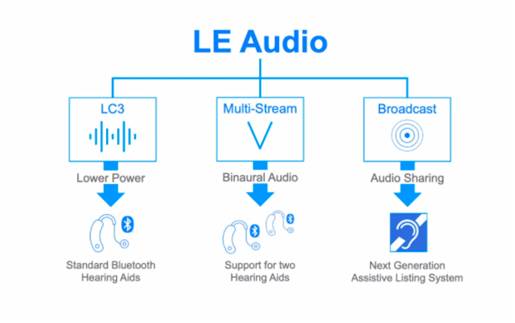 圖1:LE Audio中采用的三個(gè)關(guān)鍵技術(shù)(圖源:SIG)