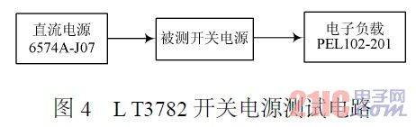 為了驗(yàn)證該開關(guān)電源性能,采用如圖4所示的方法進(jìn)行驗(yàn)證。因?yàn)樵撾娫吹妮斎腚娏鬏^大,輸入的直流電源采用安捷倫的6574A2J07。它的輸出電流最高可達(dá)42A,輸出電壓在0~50V范圍內(nèi)可調(diào),輸出負(fù)載采用建伍的PEL1022201,通過(guò)它可以直觀地看到輸出電壓和電流情況。經(jīng)過(guò)驗(yàn)證,該電路完全滿足使用單位需求。