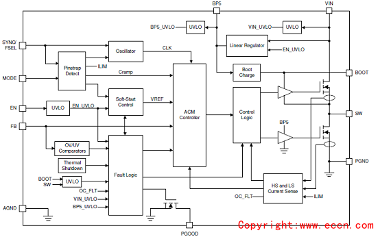 TI公司的TPS543620是高效率4V-18V輸入6A同步SWIFT降壓轉(zhuǎn)換器,具有內(nèi)部補(bǔ)償?shù)墓潭l率先進(jìn)電流模式控制,開關(guān)頻率高達(dá)2.2MHz.器件是小型2.5-mm x 3-mm HotRod VQFN封裝,和高效率和高昂頻率一起,使它最適合用在小型解決方案的地方.固定頻率控制器工作從500 kHz 到 2.2 MHz,采用SYNC引腳能和外時(shí)鐘同步.其它特性還包括高精度基準(zhǔn)電壓,可選擇軟起動(dòng)時(shí)間,單調(diào)起動(dòng)進(jìn)入預(yù)偏壓輸出,可選擇電流限制,通過(guò)EN引腳可調(diào)UVLO和全套的故障保護(hù).器件集成了25-mΩ和6.5-mΩ MOSFET,輸入電壓范圍4V到18V,輸出電壓0.5V到5.5V,三種可選擇PWM斜率,以優(yōu)化控制回路性能,五種可選擇的開關(guān)頻率:500 kHz,750 kHz, 1 MHz, 1.5 MHz和2.2 MHz.整個(gè)溫度范圍內(nèi)的確基準(zhǔn)電壓精度為0.5-V, ±0.5%.可選擇的軟起動(dòng)時(shí)間為0.5 ms, 1 ms, 2 ms和4 ms.可選擇限流以支持6A和3A工作,提供輸出過(guò)壓保護(hù),輸出欠壓保護(hù),輸入欠壓保護(hù),過(guò)流保護(hù)和超溫保護(hù).引腳和TPS543820和TPS543320兼容,結(jié)工作溫度–40C到150C,采用2.5-mm × 3-mm 14引腳VQFN-HR封裝,0.5-mm間距.本文介紹了TPS543620主要特性,功能框圖和五種應(yīng)用電路圖,以及SWIFT™降壓轉(zhuǎn)換器評(píng)估模塊TPS543620EVM主要特性,電路圖,材料清單和PCB設(shè)計(jì)圖.