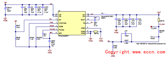 圖5. TPS543620應(yīng)用電路:12V輸入,1.8V輸出,1MHz