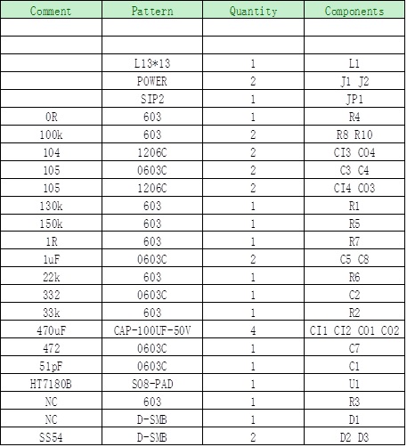 HT7180應用于單節(jié)鋰電池升壓、雙節(jié)鋰電池升壓典型參數(shù)如下: