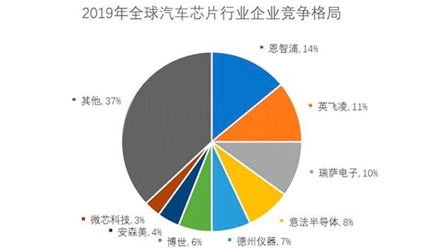 根據(jù)數(shù)據(jù)顯示,2019年全球汽車芯片市場,意法半導體占據(jù)了8%的市場份額。