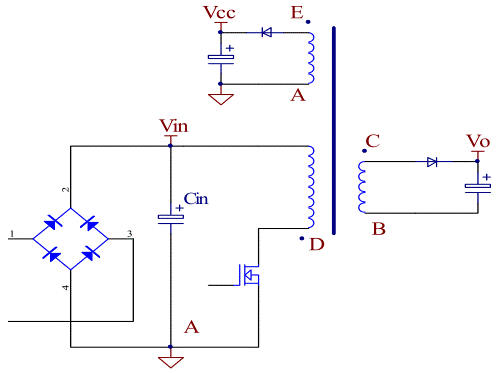 強(qiáng)調(diào):電壓沒(méi)有變化的點(diǎn)稱為靜點(diǎn)或冷點(diǎn),電壓變化的點(diǎn)稱為動(dòng)點(diǎn)或熱點(diǎn)。初級(jí)的地和Vin都是冷點(diǎn),對(duì)于輔助繞組和輸出繞組,冷點(diǎn)可以通過(guò)二極管的位置進(jìn)行調(diào)整。圖18中,A,B和Vin為冷點(diǎn),F(xiàn), D,B和C為熱點(diǎn);而圖5中,A,Vcc,Vin和Vo為冷點(diǎn),D,F(xiàn)和G 為熱點(diǎn)。