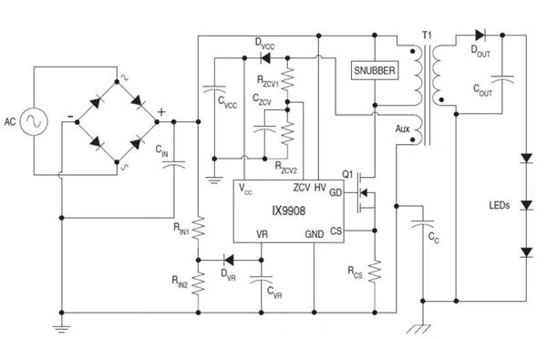 Littelfuse公司的IX9908是一款準(zhǔn)諧振控制器,專為相位可調(diào)光的離線LED應(yīng)用而優(yōu)化。