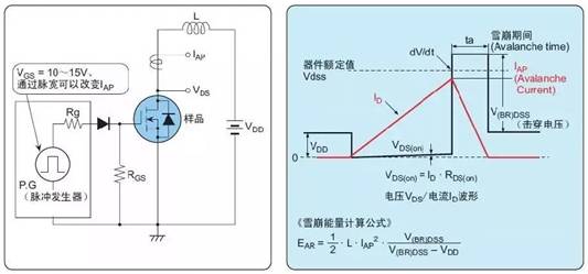 在介質(zhì)負(fù)載的開關(guān)運(yùn)行斷開時(shí)產(chǎn)生的回掃電壓,或者由漏磁電感產(chǎn)生的尖峰電壓超出功率MOSFET的漏極額定耐壓并進(jìn)入擊穿區(qū)而導(dǎo)致破壞的模式會(huì)引起雪崩破壞。