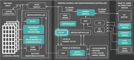圖1:在電動(dòng)汽車(chē)電源系統(tǒng)中,電池管理系統(tǒng)是最重要的子系統(tǒng)之一。這是一個(gè)涵蓋硬件、軟件和電池化學(xué)等方面的復(fù)雜系統(tǒng),涉及許多與「正!惯\(yùn)行有關(guān)的利弊權(quán)衡和判斷。[圖源:Maxim