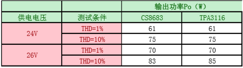 1. 輸出功率測試:CS8683 輸出功率與 TPA3116 幾乎一致。