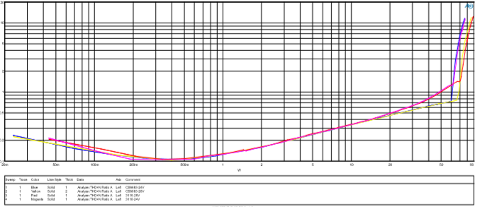 CS8683 在中低頻段 THD 比 TPA3116 小。