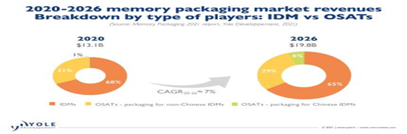 ▲ 2020-2026 年存儲封裝市場收入分類:IDM vs OSAT
