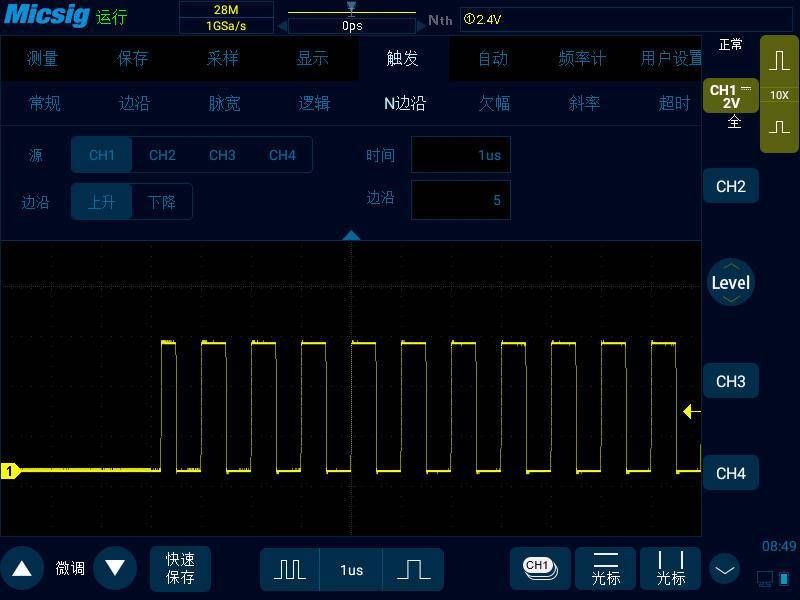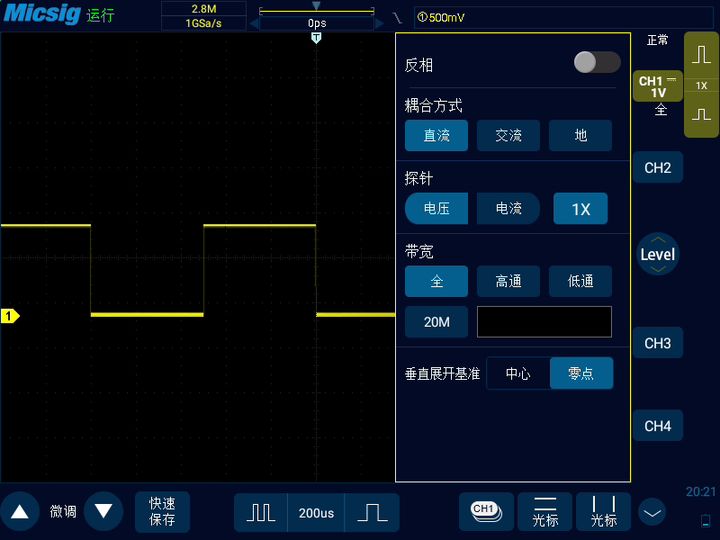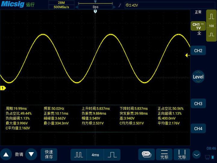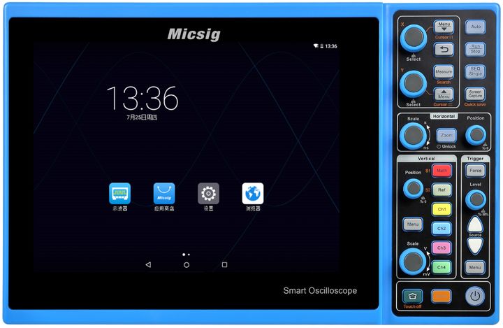 為簡(jiǎn)單起見(jiàn),本文僅以麥科信STO1104C這款帶全觸控和安卓系統(tǒng)的智能示波器為例來(lái)介紹,對(duì)于老式傳統(tǒng)的模擬示波器,隨著時(shí)代的進(jìn)步已經(jīng)被明顯的淘汰,也就不再?gòu)?fù)述。