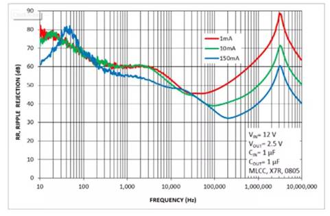 而外部噪聲是由外界影響(輸入處的紋波——實(shí)際源)產(chǎn)生的各種噪聲,輸入波紋與電源抑制比(PSRR)有關(guān)。