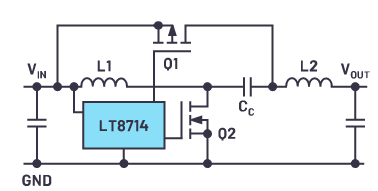 ADI LT8714 是用于四象限穩(wěn)壓器的控制器。它擁有此類調(diào)節(jié)所需的全部功能。例如,使用該IC可以精確維持0 V的電壓。圖3顯示了帶有控制器IC和功率級(jí)的簡化電路圖。后者由兩個(gè)電感L1和L2、兩個(gè)開關(guān)Q1和Q2以及耦合電容CC組成。有關(guān)每個(gè)象限中的相應(yīng)操作以及從一個(gè)象限到另一個(gè)象限的轉(zhuǎn)換行為的說明,請(qǐng)參閱LT8714數(shù)據(jù)手冊(cè)。