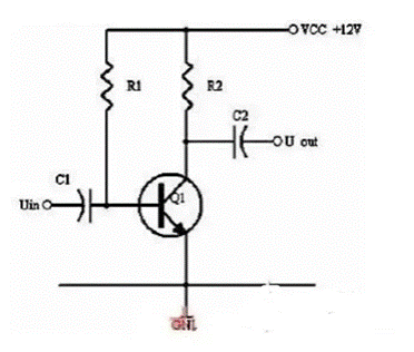 同理,當(dāng)輸入信號減小時(shí),則Ib減小,Ic電流減小,則電阻R2的電壓U2=Ic×R2會隨之減小,Uce=VCC-U2,會變大。在輸入信減小時(shí),Uce最大變化是從1/2的VCC變化到VCC。這樣,在輸入信號一定范圍內(nèi)發(fā)生正負(fù)變化時(shí),Uce以1/2VCC為準(zhǔn)的話就有一個(gè)對稱的正負(fù)變化范圍,所以一般圖1靜態(tài)工作點(diǎn)的設(shè)置為Uce接近于電源電壓的一半。