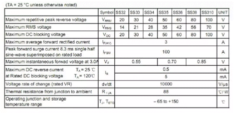 肖特基二極管工作參數(shù)