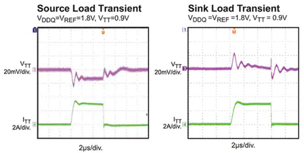 圖 4:LDO 的模擬閉環(huán)設計有助于其對負載瞬態(tài)需求作出非常快速的響應;這種性能對于 DDR SRAM 端接等應用來說是必要的。(圖片來源:Monolithic Power Systems)