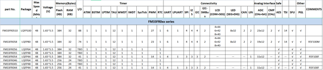 FM33FR0系列基于32位 ARM Cortex-M0內(nèi)核,最高主頻為48MHz,提供最大384KB Program FLASH,8KB Data FLASH(50萬次擦寫),flash支持ECC;最大32KB RAM,帶有奇偶校驗;支持LQFP44 / LQFP48 / LQFP64 / LQFP80 / LQFP100多種封裝形式。