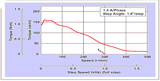 圖 1 雙極恒流步進(jìn)馬達(dá)的扭矩/速度曲線