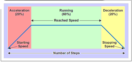 我們可以做這樣的假設(shè)嗎:步進(jìn)馬達(dá)是一些不需要受控加速過(guò)程的機(jī)器?如果可以,那么我們就可以無(wú)所顧忌地讓步進(jìn)馬達(dá)工作在任何目標(biāo)速度下嗎?事實(shí)是,相比其他馬達(dá)拓?fù)浣Y(jié)構(gòu),步進(jìn)馬達(dá)更加需要通過(guò)加速和減速過(guò)程來(lái)激勵(lì)。以任意速度啟動(dòng)步進(jìn)馬達(dá),可能會(huì)帶來(lái)可怕的后果。
