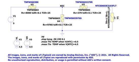 圖2 –圖片來(lái)源:LTspice XVII模擬芯片或ADC輸入電阻/熱敏電阻分壓電橋電壓,