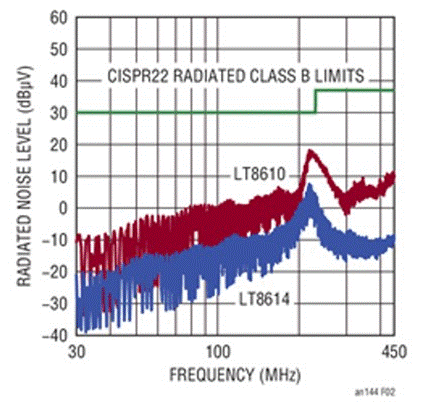 圖7:一代Silent Switcher提升EMI特性測試結(jié)果(圖源:ADI)