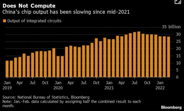 對于中國國內一季度集成電路出現(xiàn)同比下滑的原因,彭博社認為,主要是由于消費電子產品需求疲軟以及包括上海在內的部分地區(qū)因新冠疫情引發(fā)的封鎖,導致一些大型集成電路制造商難以獲得零組件,從而影響了產量。