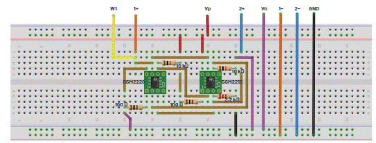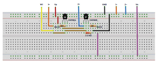 圖6.具有過零失真消除功能的推挽輸出級面包板電路