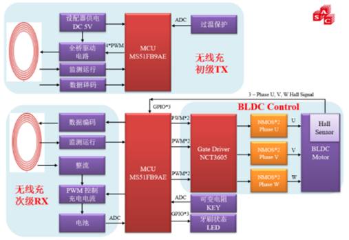 圖示3-大聯(lián)大品佳基于Nuvoton產(chǎn)品的電動牙刷無線充電+BLDC方案的方塊圖