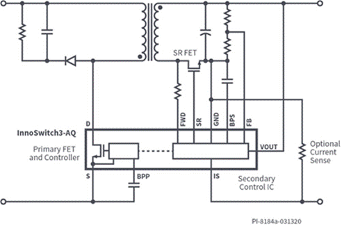 圖1:InnoSwitch3-AQ 1700V器件可實(shí)現(xiàn)簡(jiǎn)單、加強(qiáng)絕緣的汽車(chē)電源