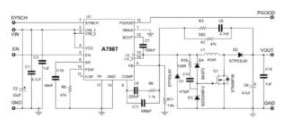 在傳統(tǒng)的異步降壓轉(zhuǎn)換器中,高邊 MOSFET 開啟,電流從輸入引腳流向電感(線圈)。為了輸出較低的電壓,降壓轉(zhuǎn)換器將關(guān)閉高端,這將輸入電壓降低到零,但同時也導致電感器對負責調(diào)節(jié)負載的輸出電容器充電。為確保電容器保持充電狀態(tài),高端再次開啟一段時間,從而重新啟動循環(huán)。此外,為了提高效率和縮小芯片尺寸,A7987 使用 N 溝道 MOSFET 作為高端開關(guān)。然而,由于驅(qū)動它需要高柵極電壓,因此該組件還必須集成一個用作升壓轉(zhuǎn)換器的自舉電路。