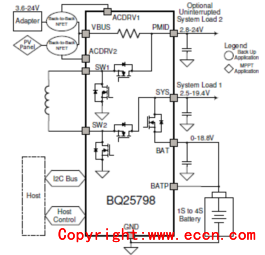 圖5. BQ25798應(yīng)用框圖:單輸入源,備份模式和有FET