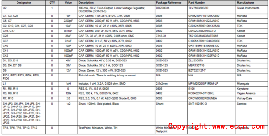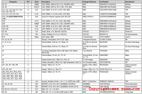 評估板BQ2579XEVM材料清單: