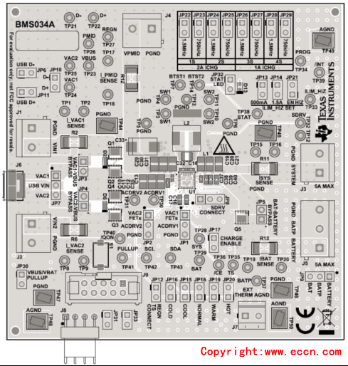 圖10.評估板BMS034A/B PCB設(shè)計圖:頂層