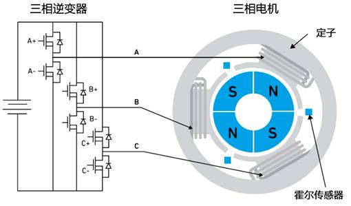 這個復(fù)雜的電路會提取轉(zhuǎn)子的位置信息,以電子方式對齊兩個磁場。對于三相 BLDC 電機,該模塊通常由微控制器和三相逆變器功率級組成,采用傳感器(如霍爾傳感器)來提取轉(zhuǎn)子的位置信息。增加這種電路確實會占用一些空間,并導(dǎo)致成本增加。然而,制造商也看到了擺脫束縛的好處,消費者也需要這些類型的電機解決方案。因此,越來越多的電動工具開始使用三相 BLDC 電機拓撲結(jié)構(gòu)進行設(shè)計。