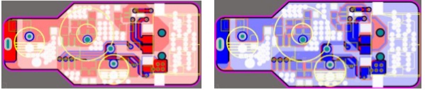 <3>LAYOUT 讓輸入電流盡可能的先經(jīng)過 C1、 C5,正極鋪銅不易過大(下圖高亮部分 為輸入正極覆銅)