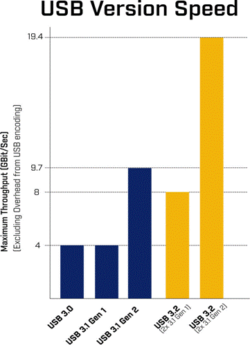 • 將 USB 3.1 Gen 1 的通量翻倍將會仍然低于 USB 3.1 第 2 代。