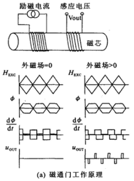 磁通門傳感器是利用被測(cè)磁場(chǎng)中高導(dǎo)磁鐵芯在交變磁場(chǎng)的飽和激勵(lì)下,其磁感應(yīng)強(qiáng)度與磁場(chǎng)強(qiáng)度的非線性關(guān)系來測(cè)量弱磁場(chǎng)的一種傳感器。