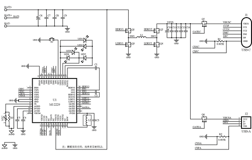 水芯 M12229 典型應(yīng)用電路如上圖所示,芯片采用 QFN48 7×7mm 0.5mm pitch 封裝,提供I2C接口,可以外接單片機(jī)進(jìn)行功能修改;內(nèi)置環(huán)路補(bǔ)償電路,內(nèi)置16-bit高精度ADC,內(nèi)置 USB Type-C 接口控制,集成 LED 電量顯示和快充指示。