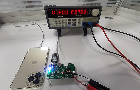 水芯 M12229 支持 AABCL 接口,支持 PD3.1/AVS、PD3.0/PPS、QC3.0、QC2.0、AFC、FCP、SCP、APPLE 2.4A、BC1.2 DCP 等充電協(xié)議。在 7.6V 輸入條件下,使用 iPhone 13 Pro Max 測試水芯 M12229 Demo 的快充兼容性。