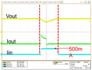 圖3.  輸入平均電流限流功能(測(cè)試條件:Vin=5V; Vout=12V; Ilimit=0.5A)