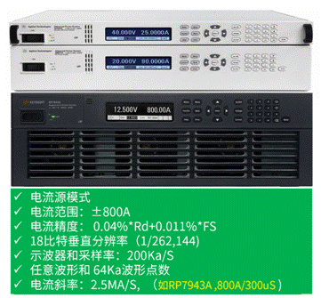 是德科技APS系列先進電源系統(tǒng),單機最大電流達800A,0.04%的讀數(shù)精度,內(nèi)置任意波形可輸出正弦波、方波、掃頻等各種波形,同時200Ksa/s、18比特高精度采樣的測量能量,成為越來越多毫歐、微歐精密電阻校準,電流互感器校驗,超導材料驗證,熔斷器、繼電器、線束和端子等大電流、低電阻測試的首選。