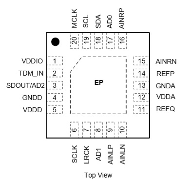 HT5943 HT5943是一款高性能低功耗89dB SNR立體聲音頻模數(shù)轉(zhuǎn)換器, 可應用于麥克風陣列、音響、數(shù)字電視、音頻接口、音頻接收器等場合。 ES7243 QFN-20 2.5V-3.6V 低功耗89dB SNR立體聲ADC數(shù)模轉(zhuǎn)換器