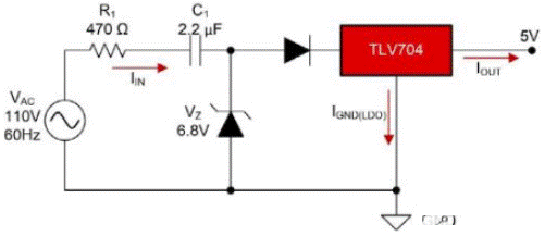 當(dāng)負(fù)載未接通時,基本的電容器壓降解決方案需要穩(wěn)壓二極管吸收應(yīng)用所需的電流。該穩(wěn)壓二極管是必需項(xiàng),因此線性穩(wěn)壓器(LDO)的輸入電壓不會超過額定值。