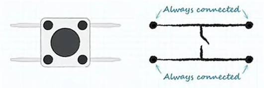 大多數(shù)觸摸開關(guān)包含四個引腳,用于在PCB上安裝期間起穩(wěn)定作用。這四個引腳內(nèi)部連接成兩組。雖然從技術(shù)上講,只有兩根導(dǎo)線需要用于布線,但最佳做法是使用所有可能的引腳。此外,有些觸摸開關(guān)只有兩個可用引腳,也有5引腳版本,這種版本可在非常小的封裝中實現(xiàn)類似操縱桿的控制功能。