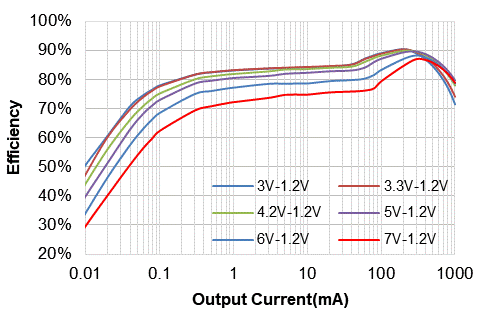 • 支持最大1A的輸出電流能力,針對(duì)1A以內(nèi)的各種負(fù)載應(yīng)用情況都可以適用。