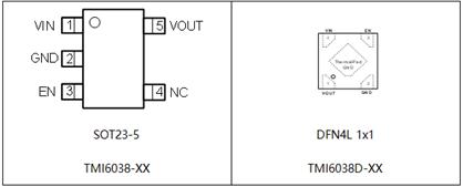 • 提供不同封裝需求,包括通用的SOT23-6(TMI3181帶PG),SOT23-5(TMI3181A)以及超小型DFN1.6x1.6-6封裝。為客戶提供通用兼容性和小封裝的選擇。
