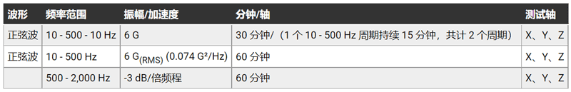 PUI Audio 為其觸感器件規(guī)定了三種振動測試(參見表 1)。器件完成測試并“休息”四個小時后,必須滿足額定轉(zhuǎn)速(對于 ERM 器件)或加速度(對于 LRA 型號)規(guī)格,以及電阻、額定電流和噪聲規(guī)格。