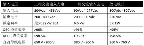 表4:用于雙向OBC的22 kW三相PFC和DCDC的高端規(guī)格