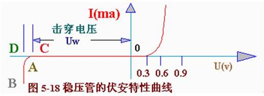 穩(wěn)壓管的穩(wěn)壓特性,可用圖5一18所示伏安特性曲線很清楚地表示出來。