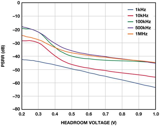 圖3. PSRR與裕量電壓的關(guān)系