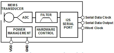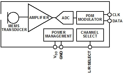 數(shù)字麥克風將模數(shù)轉換功能從編解碼器轉移進了麥克風,從而實現(xiàn)了從麥克風到處理器的全數(shù)字音頻捕獲通道。數(shù)字MEMS麥克風經(jīng)常在模擬音頻信號容易受到干擾的應用中使用。